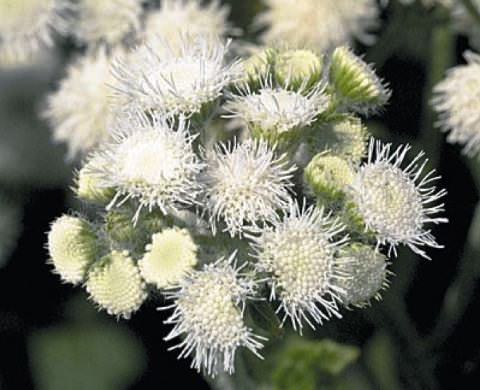 Агератум Альба - компактный почти шаровидный кустик с белыми цветами. Высота – 20 см
