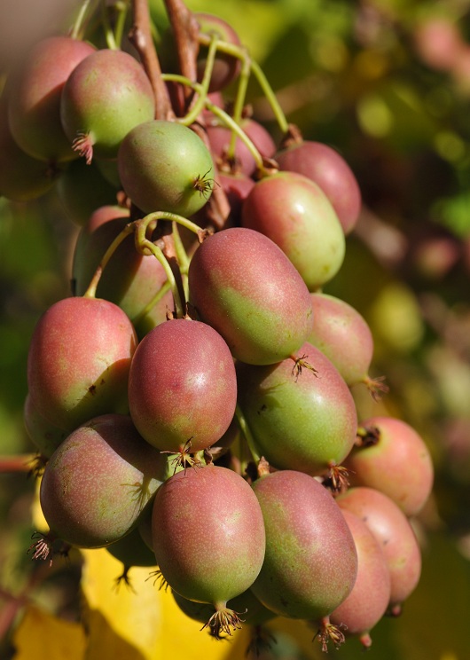 Актинидия аргута Ананасная - женский сорт с очень вкусными, ароматными плодами. Плоды созревают в октябре, овальные, слегка продолговатые, зелёные с красным румянцем. Начинает плодоношение на 3-4 год. Обрезать лучше поздней осенью или зимой (перед началом вегетации), можно летом после частичного одревеснения новых приростов.