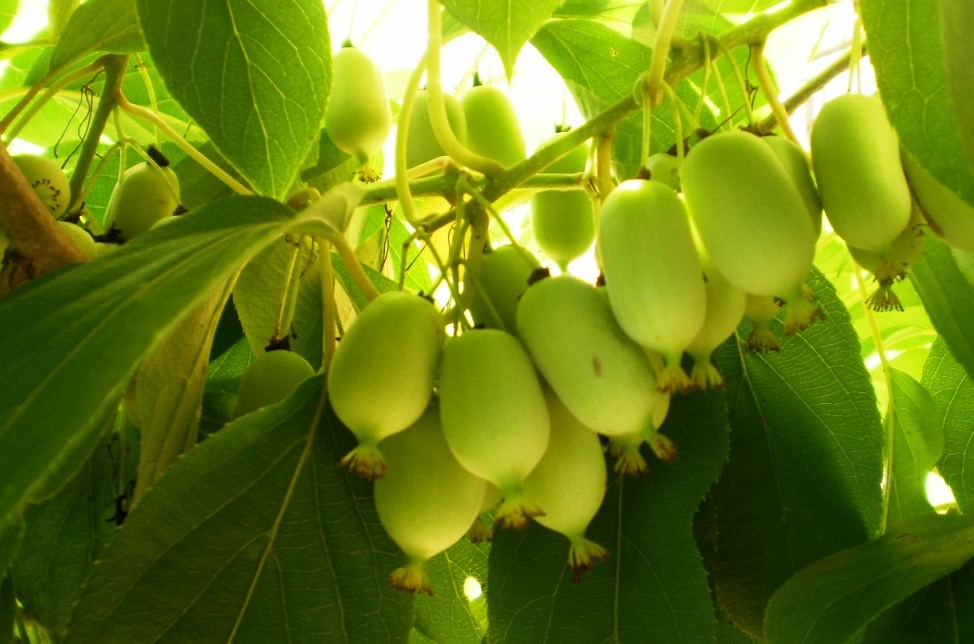 Это быстрорастущая эффектная лиана с крупными темно-зелеными листьями,мощная и долговечная. Длина ее побегов может достигать 30 метров, при годичном приросте порядка 2-3 метров. Цветение крупномеров актинидии Золотая коса начинается с конца июня. Белые лепестки имеют еле заметный зеленоватый оттенок. Величина цветка - до 2 см в диаметре.Цилиндрической формы желтовато-зеленые ягоды можно собирать с начала октября. Они достаточно крупные (до 10 г), сладкие на вкус со свежим яблочным ароматом.Данный сорт признан одним из самых зимостойких.