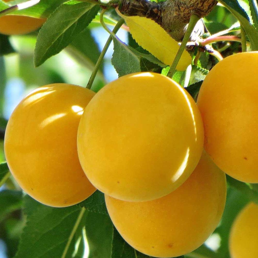 Отличный среднепоздний урожайный сорт. В плодоношение вступает ко 2 году после высадки в почву. Это быстрорастущее высокое дерево с зелеными продолговато-округлыми листьями. Крона крупномеров раскидистая и слегка приподнятая. При хороших погодных условиях среднего размера ярко-желтые плоды созревают, начиная с середины сентября. Лимонно-желтая рыхлая, но сочная мякоть имеет приятный кисловато-сладкий вкус.Сорт самобесплодный. Говоря о его достоинствах, следует отметить, что растение хорошо зимует, отличается высокой устойчивостью к клястероспориозу.