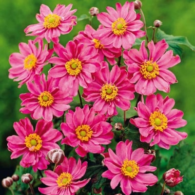 Травянистый многолетник. Цветки полумахровые темно-розового цвета, ближе к красному, с желтой серединкой. Быстро разрастается. Высота 70-80 см. Место посадки: Всей своей красоты анемона Pamina (Памина) достигает при посадке в полутени, но и на солнечном участке она себя прекрасно чувствует при обильном поливе почвы. Красиво смотрится анемона Pamina (Памина) рядом с кустарниками, в подлеске около дорожек. Зимует: В южных регионах анемона гибридная может зимовать без укрытия. Достаточно замульчировать почву перепревшим коровьим навозом или готовым компостом. Это позволит создать достаточно комфортные условия для весеннего развития растения. Нуждается в укрытии в северных районах. Почва: рыхлая с хорошим дренажным слоем. При застое влаги корни растения могут погибнуть. Уровень кислотности грунта должен быть нейтральным.