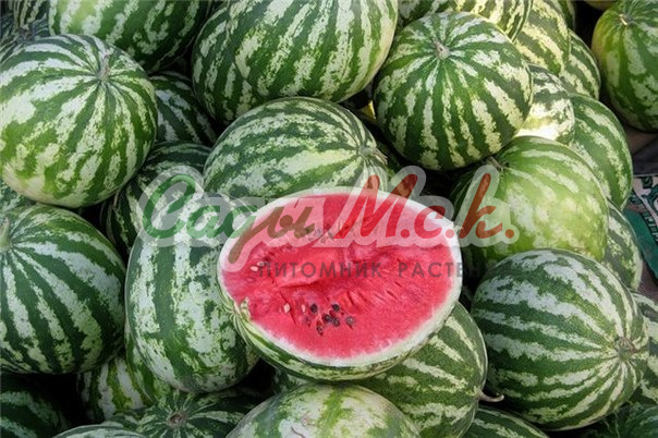 Раннеспелый (период от полных всходов до первого сбора плодов 70-85 дней). Растение коротко- или среднеплетистое. Длина главной плети не превышает 1,8 м. Стебель тонкий, округлой формы, слабоопушенный. Лист мелкий, сильнорассеченный, с узкими долями. Плод шаровидный, небольшой, массой 1,8-2,5 кг. Поверхность плода гладкая или слегка сегментированная. Окраска черно-зеленая со скрытым рисунком. Кора тонкая, хрупкая. Мякоть оранжево-красная, нежная, сочная, сладкая. Вкусовые качества хорошие. Предназначен для выращивания в пленочных теплицах и в открытом грунте. Посев на рассаду в конце апреля. Срок выращивания рассады 30-35 дней, высадка - в конце мая – начале июня. Растения подвязывают к шпалере, до высоты 50 см удаляют все боковые побеги, последующие прищипывают над 1-3 листом. Возможно выращивание в свободной культуре в расстил. Полив умеренный, особенно в период созревания плодов. Товарная урожайность 2-3 кг/м2. Относительно устойчив к антракнозу, в средней степени поражается мучнистой росой. Схема посадки 70х150 см.