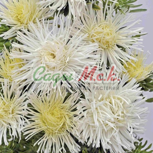 Растение плотное, прочное, широкопирамидальной формы, высотой 50-55 см, диаметром 25 см, сильноветвистое. Соцветия полумахровые, диаметром 5-6 см, белые с желтым диском. Количество их на растении достигает 80-100 шт. Для выращивания подходят хорошо освещенные участки с плодородной суглинистой или супесчаной почвой. Астры обладают высокой холодостойкостью – хорошо переносят заморозки до -3-4°C. Выращивают чаще всего рассадным способом. Семена высевают в марте-апреле, пикируют с развитием первой пары настоящих листочков по схеме 5х5 см, в открытый грунт рассаду высаживают с середины мая до начала июня. Возможен подзимний посев астр: в конце октября на глубину 5-8 см. Сверху посевы мульчируют торфом или опилками на высоту 3-5 см. Весной в конце марта -начале апреля посевы раскрывают. Появившиеся в конце апреля всходы будут закаленными, а выросшие растения сильными, устойчивыми к заморозкам и обильно цвести. Используются для получения срезки и оформления участка.