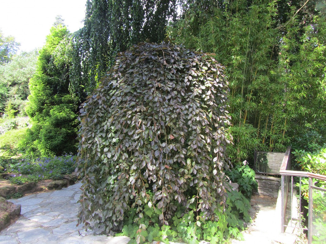 Кустарник плакучей формы высотой до 200 см и шириной 200-300 см. Цветки белые, в соцветиях. Цветение в мае-июне. Плоды сине-чёрные, шаровидные, съедобные, украшают растение в августе-октябре. Место полутенистое. Почва умеренно влажная