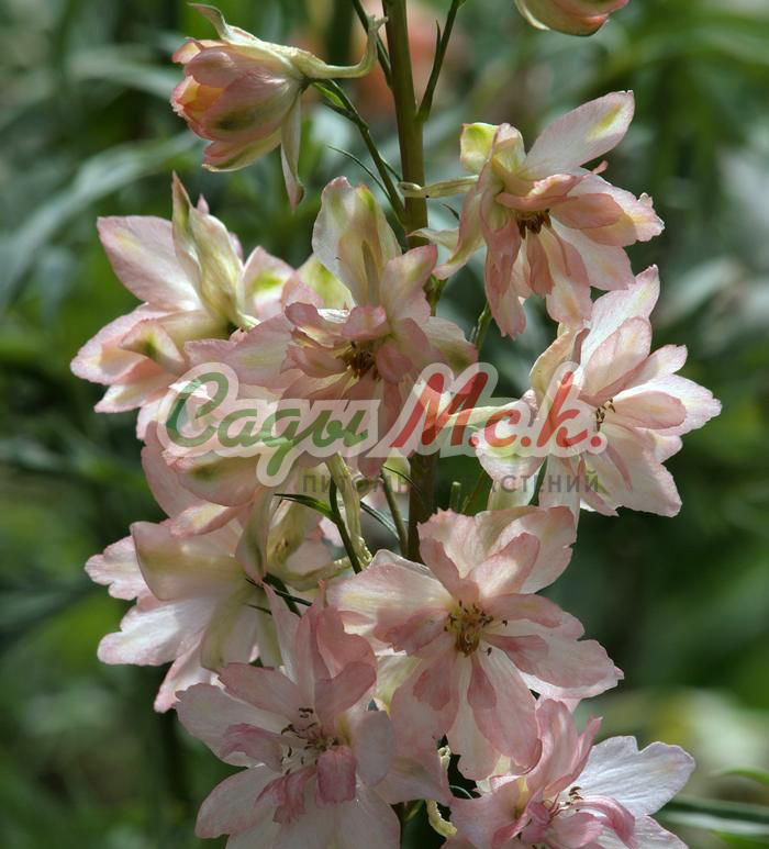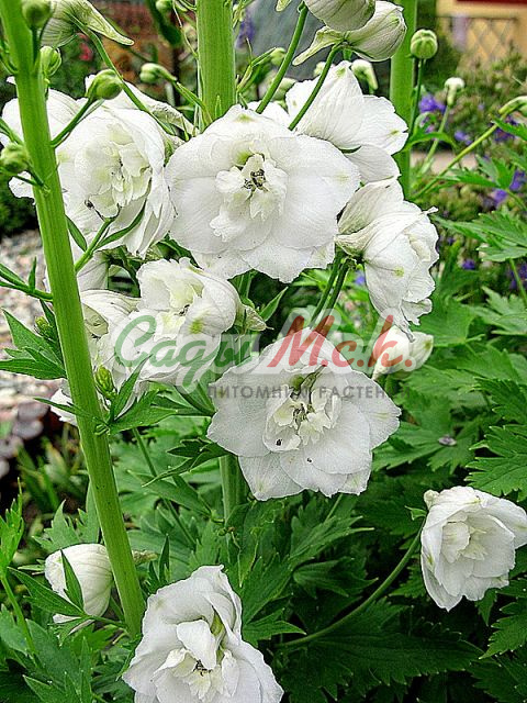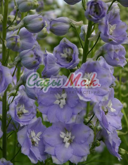 Многолетнее растение семейства Лютиковые, высотой до 2 м с плотными кистевидными соцветиями розовых, темно-фиолетовых, синих, голубых, чисто-белых цветков. Цветет в июне-июле, вторичное цветение – в августе-сентябре, отцветшие соцветия обрезают для полноценного второго цветения. Хорошо растет на освещенных участках с легким затенением в полуденные часы. Предпочитает плодородные суглинистые и супесчаные, умеренно влажные почвы. Семена высевают осенью в открытый грунт или в марте на рассаду, в мае растения высаживают на постоянное место с расстоянием 35-40 см. Используются в групповых и одиночных посадках, для получения срезки. В срезанном виде стоят в воде до 10-12 дней. Все части дельфиниума ядовиты.