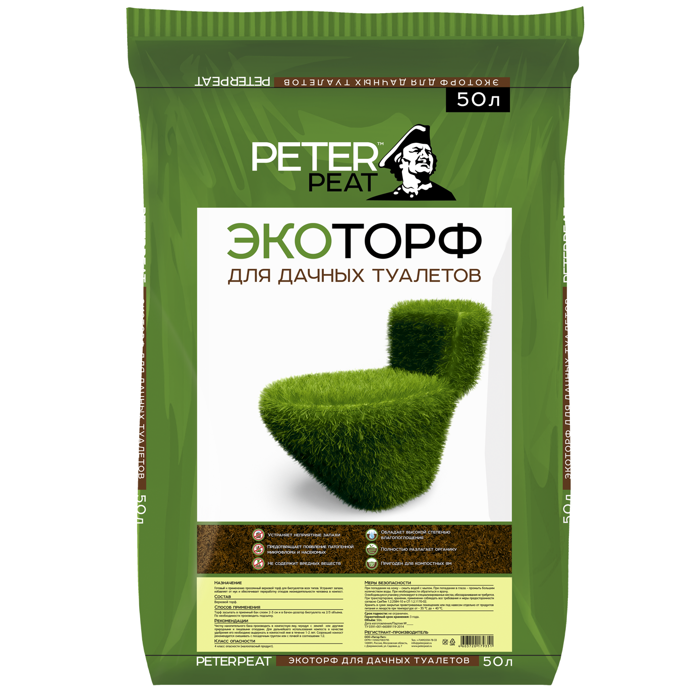 Торф Эко для дачных туалетов 50 л - готовый к применению, просеянный и измельченный торф для дачных туалетов и компостных ям. Преимущества: экологически чистый, не содержит вредных веществ. Быстро разлагает органику, превращая отходы в компост. Устраняет неприятные запахи. Предотвращает появление патогенной микрофлоры и насекомых.