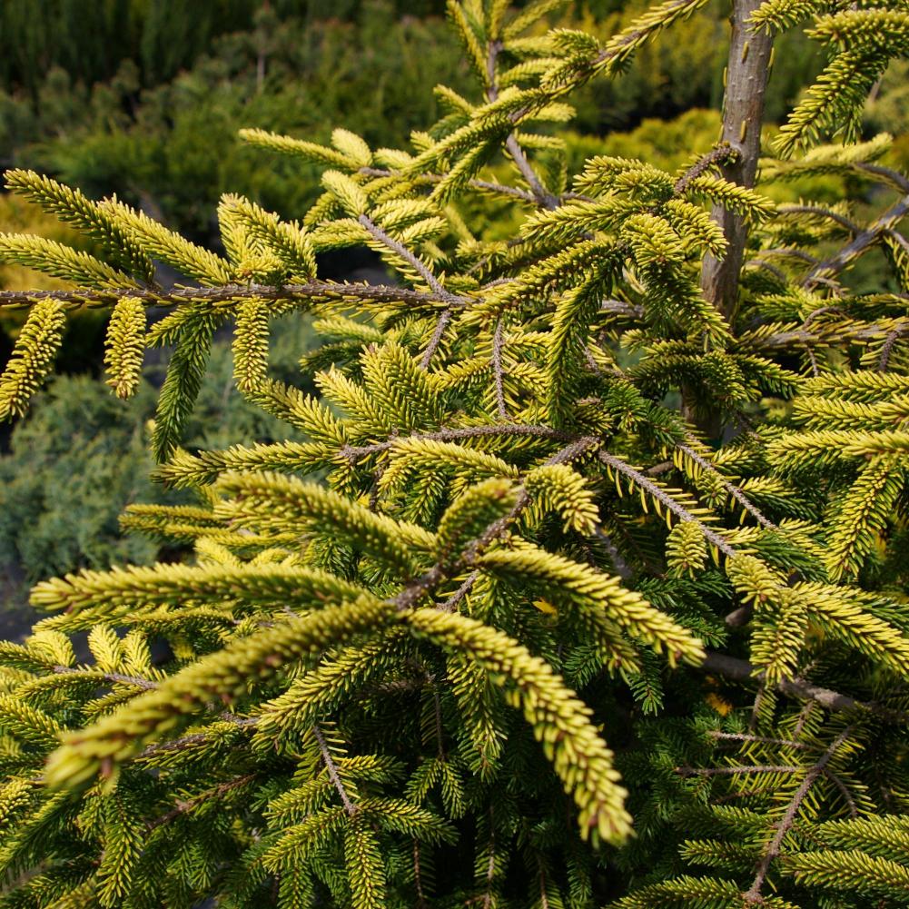 Ель восточная Skylands - дерево с пирамидальной кроной и короткой плотной хвоей, которая круглый год красуется золотистой окраской. Достигает 11 м в высоту и 2 м в ширину, но растет медленно - не более 8-15 см в год, а в молодом возрасте еще медленнее (в 10 лет может иметь высоту 1,6 м). Одна из самых популярных разновидностей ели.
