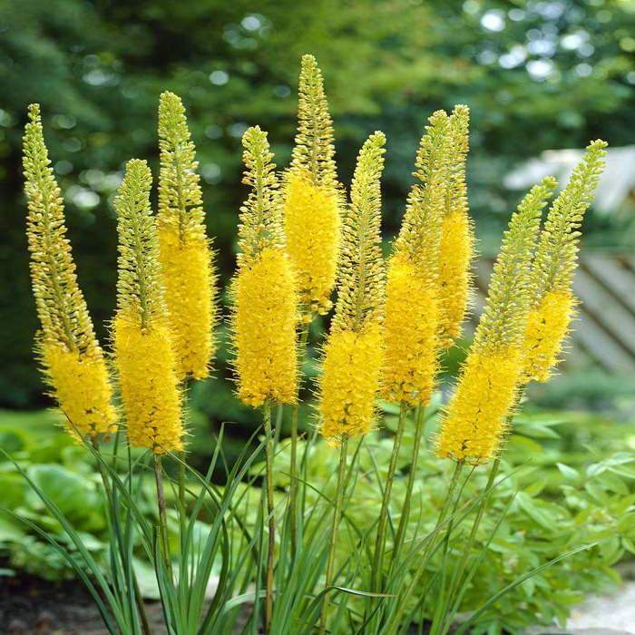 Эремурус Бунге считается красивейшим видом, способным украсить любой сад. Розетка около корней состоит из большого количества листьев сизого оттенка, а над ними на 1,5 м возвышается яркое соцветие из цветков золотисто-желтого оттенка. После увядания цветки становятся бурыми. Сорт отлично переносит зиму и не требует специальной подготовки к этому периоду. Размещать цветок рекомендуется на теплых и хорошо освещаемых солнцем участках. Главное, чтобы на этом месте не имелось стоячих вод. Грунт должен быть хорошо дренированным и плодородным. Эремурус требуется обильно поливать, особенно во время цветения. Рассаду часто выбирают для цветников, размещают на заднем фоне миксбордеров. Она прекрасно подойдет для срезки, а также будет отлично выглядеть в сухих букетах.