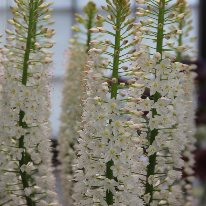 Эремурус Уайт Бьюти Фейворит - цветки белые. Цветение в июне-июле. Высота 90-120 см. Место солнечное, защищённое от ветров. Почва рыхлая, хорошо дренированная. На зиму требует мульчирования корневой зоны. Зона 5 (до -23ºС).