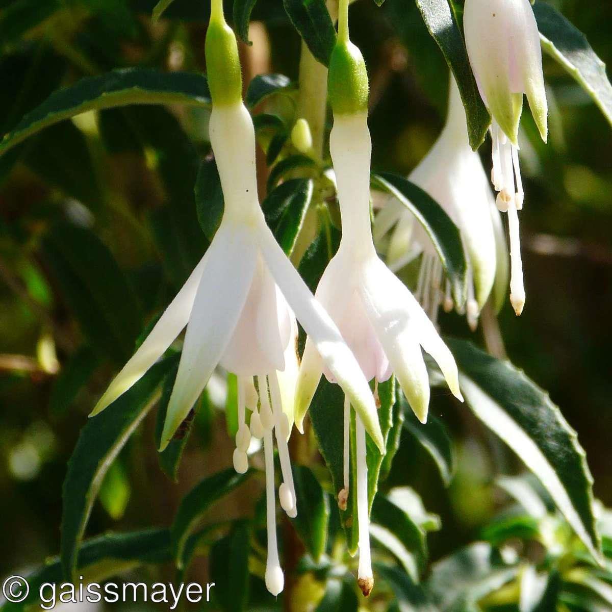 Многолетний кустарник высотой и шириной в пределах 90–150 см часто выращивается как однолетник; тонкие побеги изогнутые. Листья супротивные, бывают собранными в мутовки, ланцетные, с острым кончиком, зеленого цвета. Свисающие цветки с белоснежными чашелистиками, бледно-лиловыми венчиками и выступающими тычинками, одиночные или парные; цветет растение с начала лета и до заморозков, привлекает пчел