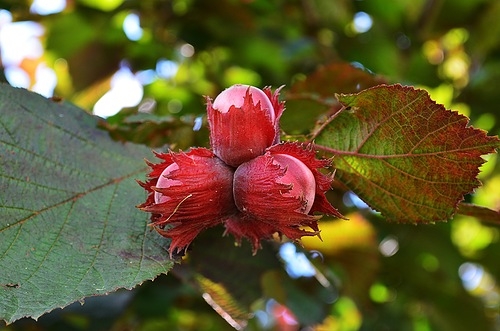 Саженцы ореха Московский рубин - одни из самых востребованных растений среди садоводов-любителей. Орехи этого сорта более крупные. Окраска листьев, плюски и ореха в начале лета ярко-малиновая, к концу лета — темно-малиновая. В соплодии 6-8, а иногда до 14 крупных орехов. Плюска двустворчатая, равна ореху или немного длиннее его. Скорлупа средней толщины, донце ровное, гладкое, выпуклое. Вершина ореха притупленная. Вверху орех немного шире, чем у основания. Ядро десертного вкуса, нежное, его выход более 51%, содержание жира 64%. Ядро в гладкой светлой оболочке. Крупномер Московский рубин созревает в начале октября. Куст мощный, сильнорослый, высотой до 4.5 м, урожайный, зимостойкий.