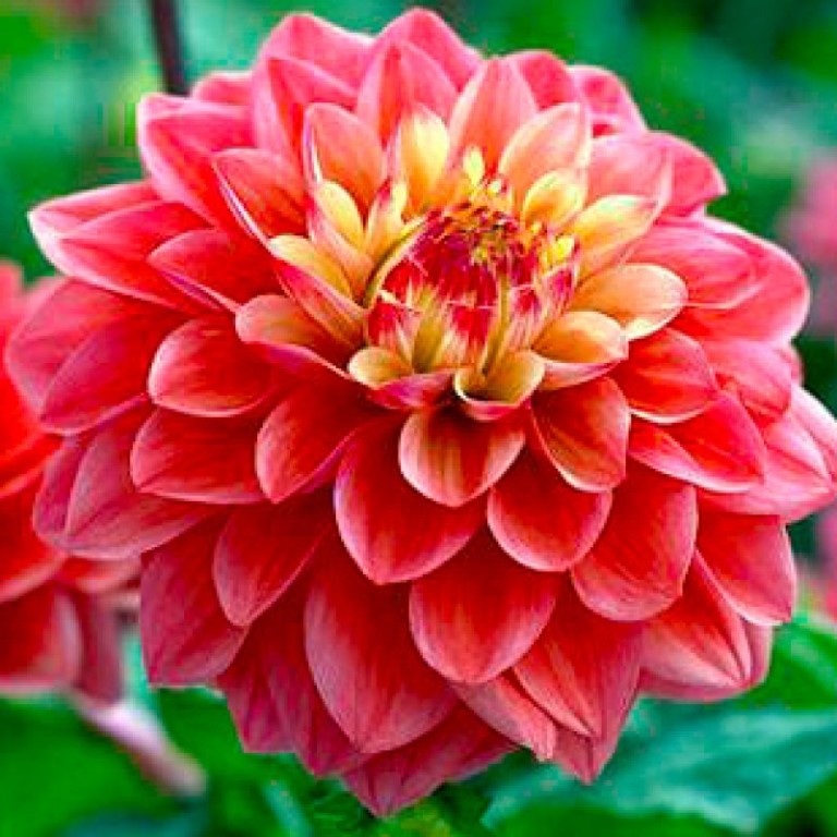 Георгина декоративная Принцесса Грация (Dahlia Princesse Gracia) подойдет, если вы хотите привнести в клумбу некой страстности, южной яркости. Они становятся невысокими (всего около 60 сантиметров) декоративным растениями. Цветение очень пышное, привлекающее внимание издалека. Продолжается с июня и обычно до осенних заморозков. Шарообразные бутоны невероятно красивы: по краям они насыщенно-розовые, а ближе к центру и уже в самой сердцевине – огненно-желтые, будто изнутри исходит теплое пламя. Часто выращиваются контейнерным методом и используются для букетных композиций.