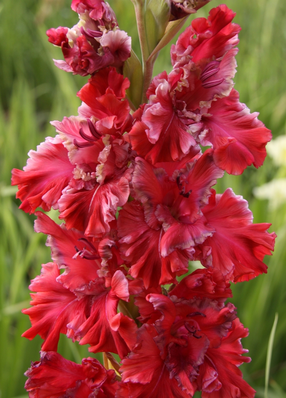 Африка - гладиолус с цветками необычного окраса. Они темно-вишневые с белыми штрихами. Растение относится к крупноцветковым. Благодаря внешней привлекательности прекрасно смотрится и в саду, и в вазе. Обладает приятным сильным запахом. Высота куста - до 130 см, обычно на стебле располагается не более 20 цветков, но чаще их 15-18. Нуждается в умеренном поливе. Растение не любит слишком влажных территорий и плохо переносит отсутствие солнечного света. Сорт был создан селекционерами из Голландии, популярен по всей Европе. Размножается делением луковиц. Цветение начинается в июле-августе, продолжается вплоть до конца сентября. Высадка в открытый грунт происходит в апреле-мае.