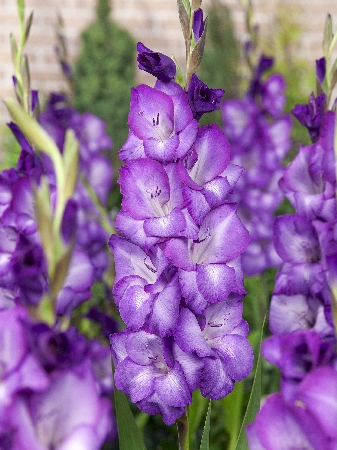 Гладиолус Крупноцветковый Chemistry — соцветия размера ХХL. Фиолетовые бутоны гладиолусов собраны по 20-25 штук в соцветии до 75 см. Это действительно огромный букет! Каждый цветок с сияющей белой серединкой достигает 15 см в диаметре.