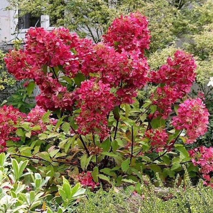 Гортензию метельчатую «Мега минди» называют королевой сада, так как ее пышные кисти могут цвести до наступления морозов и украшать собой участок. Декоративное растение характеризуется самыми крупными соцветиями по сравнению с сородичами. Кистевидные метелки кустарника имеют длину до 0,3 метра. Бутоны поначалу имеют белый окрас, но по истечении времени становятся красно-розовыми. Побеги Mega mindy вертикальные и прочные. Им несвойственно распадаться под увесистыми соцветиями. Разрастается растение очень быстро, за год его высота может увеличиться на 0,25 метра. Взрослый кустарник вырастает не более чем до 175 сантиметров, при этом крона имеет диаметр в 200 сантиметров. Компактная гортензия выглядит эффектно, ей присуща особая декоративность. Культура способна радовать роскошными яркими соцветиями в период с середины лета и до середины осе