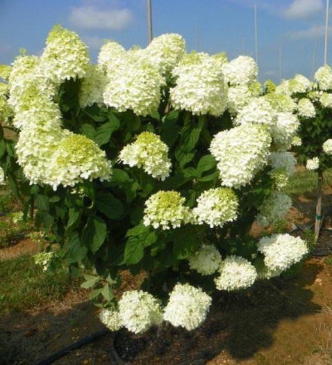 Новый морозостойкий сорт гортензии метельчатой. Гибрид между сортами Limelight и Grandiflora. Раскидистый крупный кустарник до 2м высотой, и диаметром до 1,5м. Цветет очень крупными плотными коническими соцветиями около 40см длиной, состоящими из белых, в начале цветения - зеленоватых, цветков, которые к осени приобретают легкий оттенок розового. Цветет обильно с июля по октябрь на побегах текущего года. Листья крупные, к осени желтеют.
