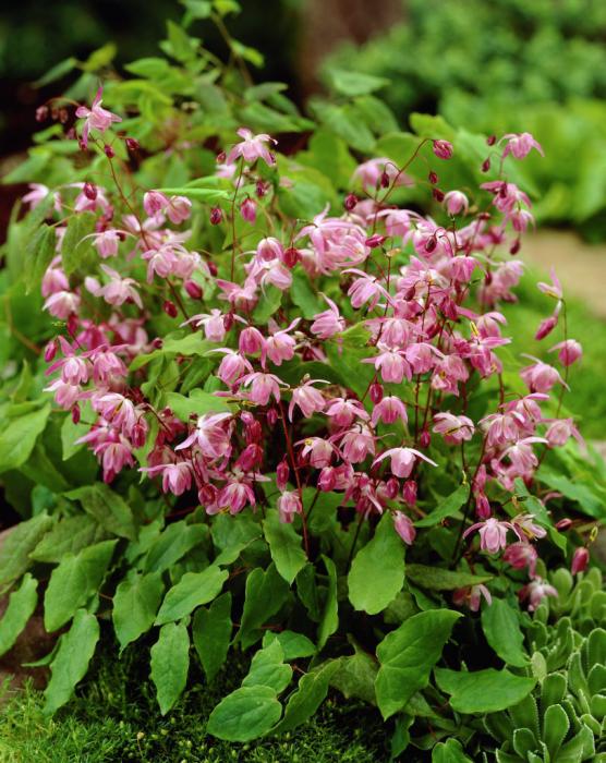 Горянка пышная Розеум (Epimedium youngianum Roseum) подойдет для ковровых посадок и имитаций лугового разнотравья на обширных газонах. Предпочитает суглинистые почвы и полутеневые места. Высота многолетнего растения около 20 см, цветение начинается в мае. Цветки мелкие, до 2 см в диаметре, нежно-розового цвета, располагаются на высоких прочных цветоносах по несколько штук на каждом. Листья мелкие ярко-зеленые, хорошо оттеняют цветки и могут служить подложкой для смешанных цветовых композиций в ландшафтных проектах. Растение абсолютно неприхотливо и не требует дополнительного полива или удобрений, зимует без укрытия.