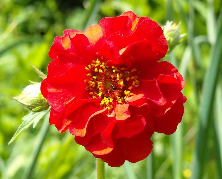 Прямостоячее растение с непарноперистыми листьями в прикорневой розетке и изящными цветоносам. Цветки махровые, алые, до 4 см в диаметре, собраны в метельчатое соцветие. Хорошо растет на открытых солнечных местах (но выносит полутень) с дренированной почвой, отзывчив на полив, устойчив к временной засухе. На зиму рекомендуется легкое укрытие листьями. Используются для групповых посадок, миксбордеров, для оформления прибережных участков у ручьев и водоемов.