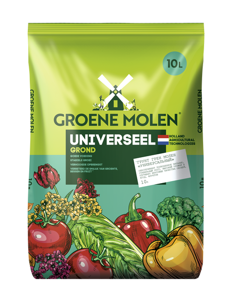 Грунт Универсальный (линия Groene Molen) 10 л - это полностью готовый к применению питательный торфяной грунт, который предназначен для выращивания овощных и цветочных культур, комнатных растений, садовых цветов, плодовых деревьев и ягодных кустарников.