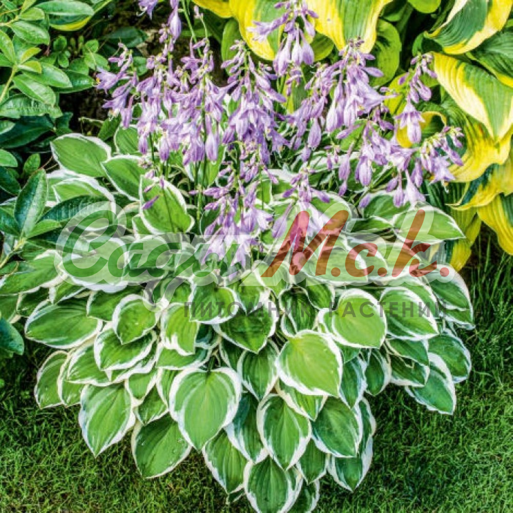 Хоста Сhristmаs Trее – сильный здоровый сорт с декоративными листьями и нежными красивыми цветами. Такое растение идеально подходит для декорирования тенистых уголков сада или мест с ажурной тенью. Его огромные, с выразительной вафельной фактурой сердцевидные листья образуют плотные полуметровые кусты, достигающие в диаметре 1 метра. Листовые пластины такого яркого «красавца» могут быть окрашены сразу в несколько цветов: середина – темно-зеленая, край – светло-кремовый, а по всему листу проходят крупные, хорошо прочерченные серо-голубые бороздки. Растение зацветает в июле и почти до середины августа можно наблюдать постоянное появление бело-сиреневых цветов на длинных цветоносах. Сорт неприхотлив в уходе, устойчив к заболеваниям, неплохо нарастает.