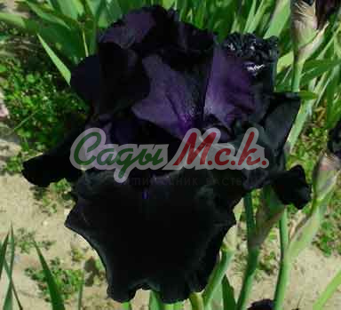 Ирис Ghost Train практически черный с идеальной формой и гофрировкой. Высокие, стройные цветоносы.3-4 цветоноса по 7-11 бутонов на каждом. Высота цветоноса 94 см. Срок цветения средний.
