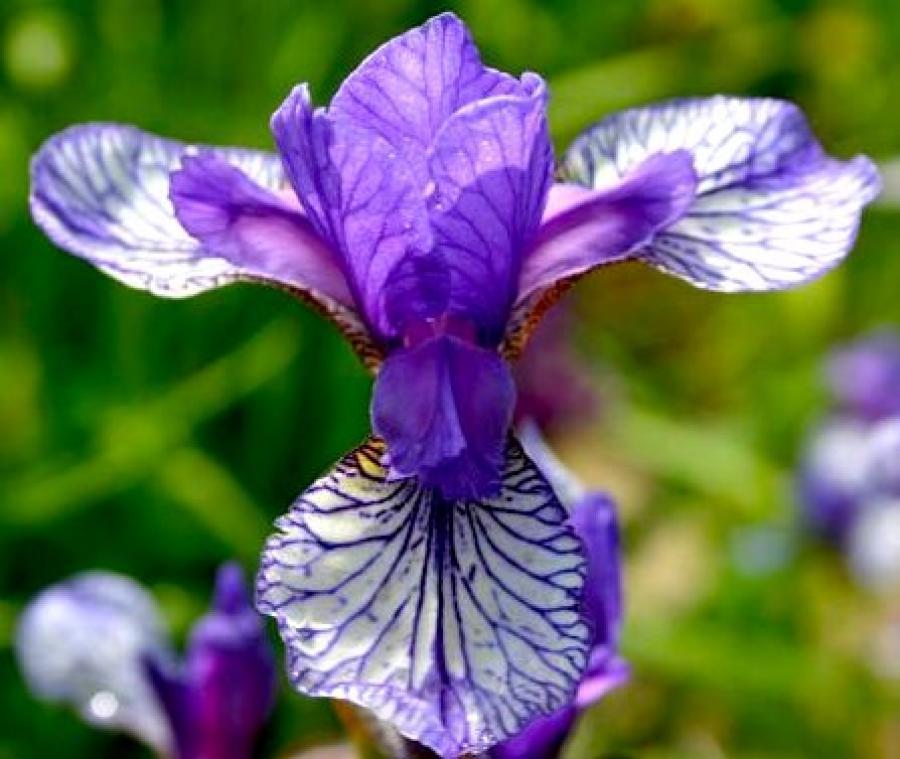 Ирис сибирский Флайт оф Баттерфлайз (Flight Of Butterflies) отлично себя чувствует на хорошо увлажненных почвах и солнечных участках. Цветущее растение имеет слабый аромат. Расцветание ирисов в саду говорит о наступлении настоящей весны. Верхние лепестки имеют сине-фиолетовый окрас, нижние при этом белые с желтым основанием и очаровательными фиолетовыми прожилками по всей поверхности, создающими сетчатый рисунок.