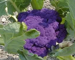 Капуста цветная Graffiti - вкусный сорт, используется в домашней кулинарии. Головка круглая, большая, средне бугристая, багрово-фиолетового цвета, массой 1-1,5 кг. Листья серо-зеленые, крупные, волнистые, многочисленные.