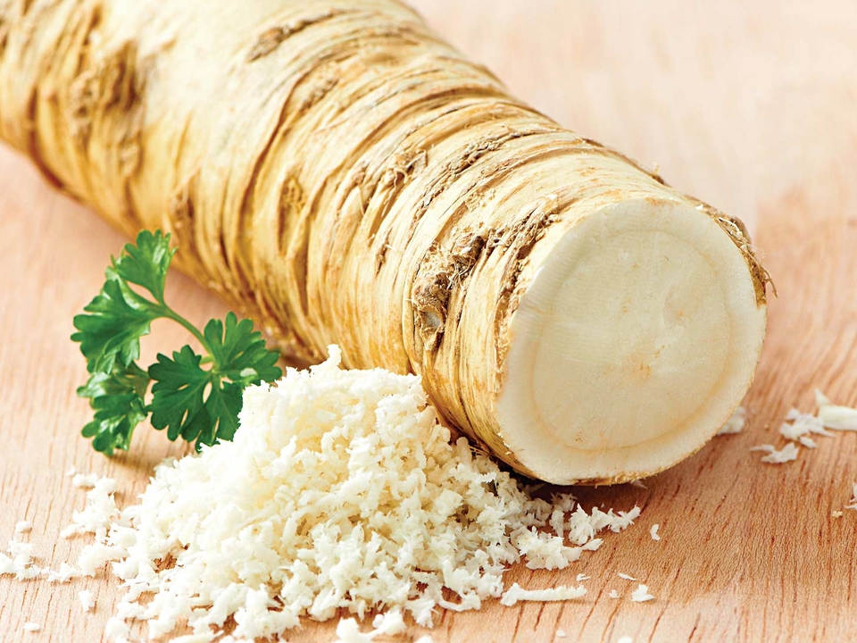 Хрен деревенский, или обыкновенный (Armoracia rusticana) - пряно-ароматическое многолетнее травянистое корневищное растение. Хрен образует стержневой, толстый и мясистый корень, достигающий в диаметре 8-10 см, с большим количеством расположенных по спирали спящих почек по всей длине. Из этих спящих почек при благоприятных условиях могут образовываться новые корни и розетки листьев. Корневая система мочковатая, с мощными придаточными корнями, покрытыми желтовато-белой корой. Она у этого растения обычно расположена довольно плотно в верхнем слое почвы на глубине 25-30 см, равномерно распределяясь во все стороны до 60 см. Корень может уходить в почву на глубину до 5 м.