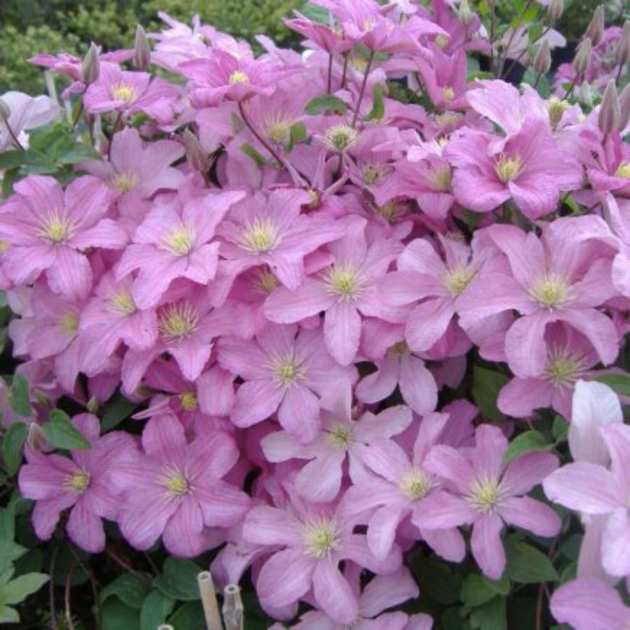 Саженцы клематиса Cоmtеssе dе Bоuсhаud отличаются обильным цветением, этот сорт здоровый и умеренно растущий. Соцветия средней величины представляют собой красивые розовые лепестки, собранные в чашу, внутри нее располагаются кремовые тычинки. Срок цветения этого растения может длиться с июня по сентябрь, клематис отлично выполняет свою декоративную функцию, обвивая рядом стоящие опоры. Данный сорт отлично подходит для выращивания в большом контейнере, красиво смотрится на балконах или террасах. Клематис Cоmtеssе dе Bоuсhаud не нуждается в особом уходе, нуждается в своевременном поливе и достаточном солнечном свете.