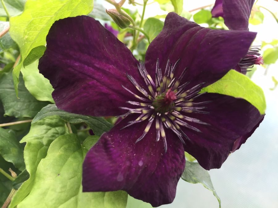 Саженцы клематиса Dаrk Eуеs имеют красивое и необычное название, которое в переводе на русский обозначает «Черные глаза». Соцветия этого растения обладают насыщенным почти черным цветом, который переливается пурпурным и фиолетовым цветом. Бутоны состоят из четырех лепестков, в сердцевине располагаются темные пыльники. Данное растение цветет в июне или июле, представляет собой вытянутую лиану, которая красиво обвивает любую опору. Этот сорт отлично подходит для украшения беседки, ограды, решетки или деревьев. Очень красиво сочетается с желтой листвой, не требует тщательного ухода за собой.