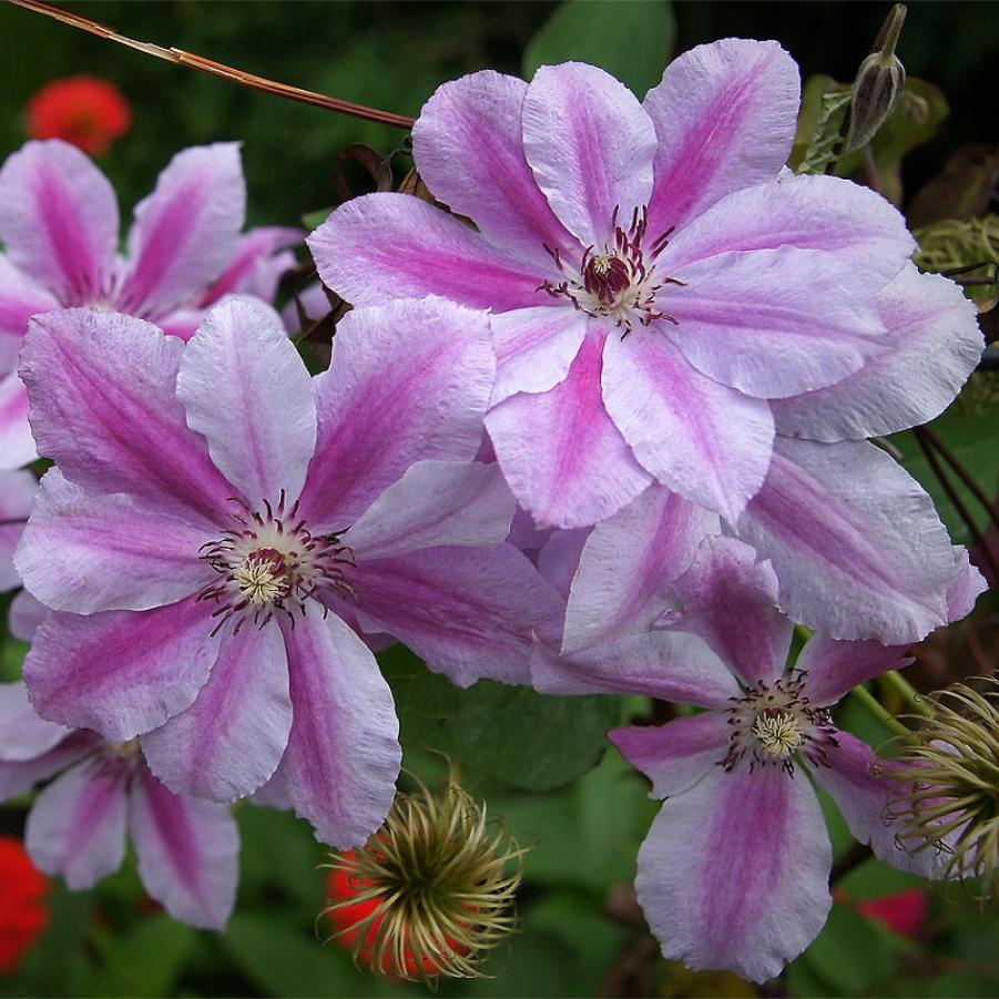 Саженцы клематиса Girеnаs представляют собой литовский сорт лиан с красивыми и эффектными бутонами. Соцветия светло-розового цвета, имеет красную полосу посредине каждого лепестка и размытую окантовку по краям. В сердцевине находятся тычинки на белых нитях с пурпурными пыльниками. Интенсивное цветение этого сорта наблюдается в начале июля или в июне, также бутоны распускаются на ветвях в сентябре. Это растение идеально подойдет для декоративного украшения решеток, садовых опор, кустарников и деревьев. Клематис Girеnаs не требователен в уходе, не нуждается в обрезке и подкормке, может выращиваться в контейнерах.