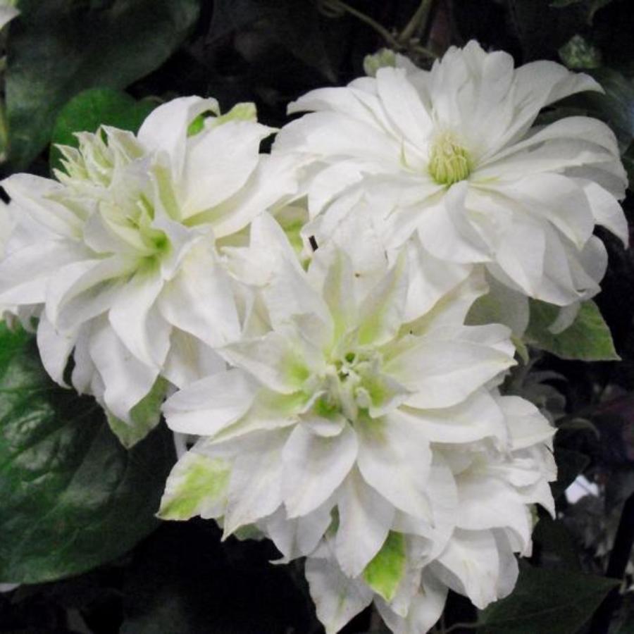 Клематис Maria Sklodowska Curie - сенсационный сорт со всегда махровыми (при полном раскрытии полумахровыми), шаровидными либо полушаровидными белыми цветами, диаметром 12-15 см, на которых в холодную погоду появляется зеленоватый оттенок, более интенсивный у основания. Лепестки эллиптические, заостренные, с приподнятыми, волнистыми краями. При раскрытии цветка видны золотистые пыльники на кремовых нитях. Цветение очень обильное, цветы появляются на высоте 80 см от основания. Время цветения июнь-июль. Высота куста достигает 2 м.