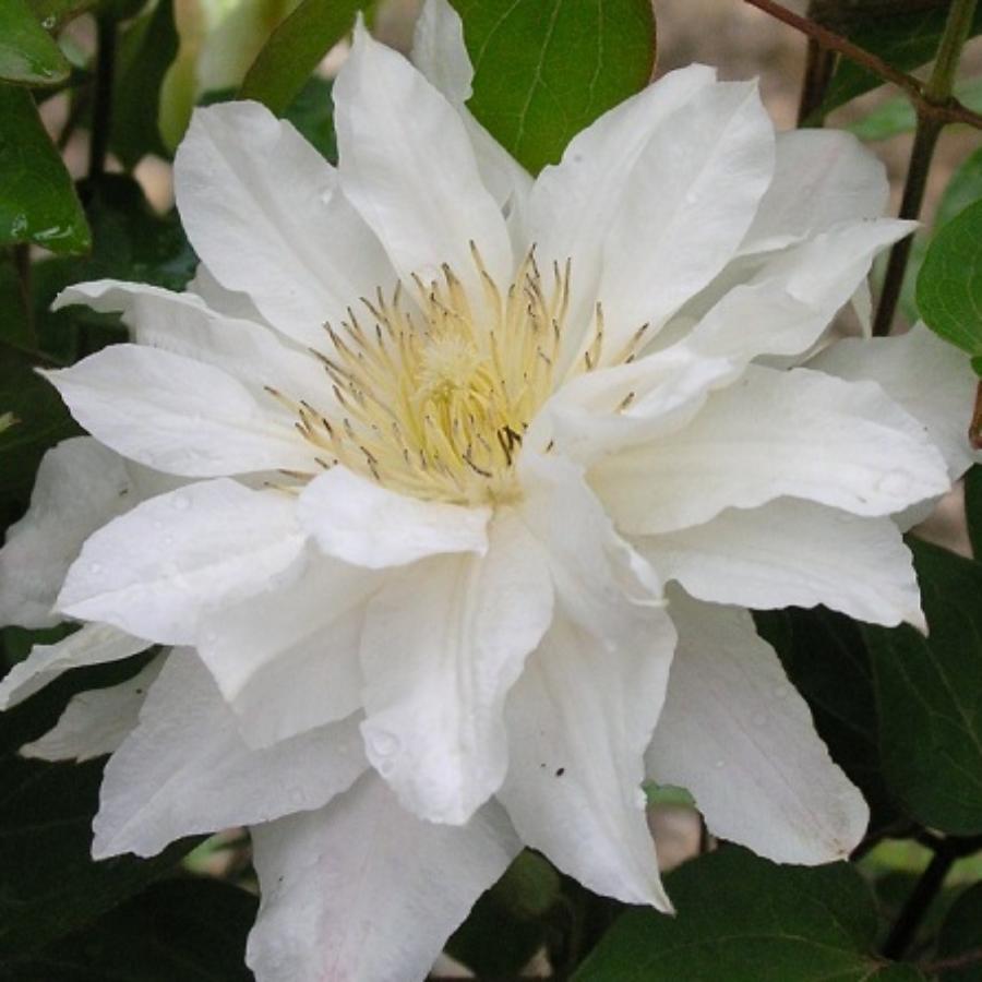 Саженцы клематиса Sуlviа Dеnnу радуют взгляд шикарными белоснежными махровыми цветками на побегах прошлого года и нежными одиночными цветками на побегах текущего года. Светло-желтые тычинки прекрасно дополняют элегантность белых лепестков. Лучше всего эта декоративная лиана растет на солнце, поэтому саженцы данного сорта лучше размещать с южной или западной стороны (в крайнем случае – на хорошо освещенных участках).Крупномер Sуlviа Dеnnу вырастает до 2-3 м, а его большие белые цветы диаметром 10-15 см лучше всего смотрятся на темном фоне. Этому сорту характерны два периода цветения: в мае-июня и с июля по сентябрь.