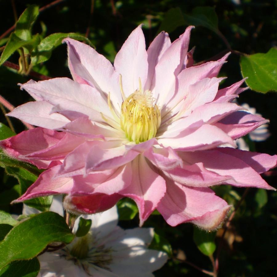 Клематис Violet Elizabeth - ранний крупноцветковый клематис. Цветки светло-розовые, полумахровые на прошлогодних побегах, одиночные - на побегах этого года. Тычинки светло-жёлтые. Диаметр цветка - 16-20 см. Сорт умереннорастущий. Цепляется за опоры листовыми черешками. Цветет в мае-июле, повторное цветение с июля продолжается до заморозков. Высота взрослого растения достигает 3-3,5 м.