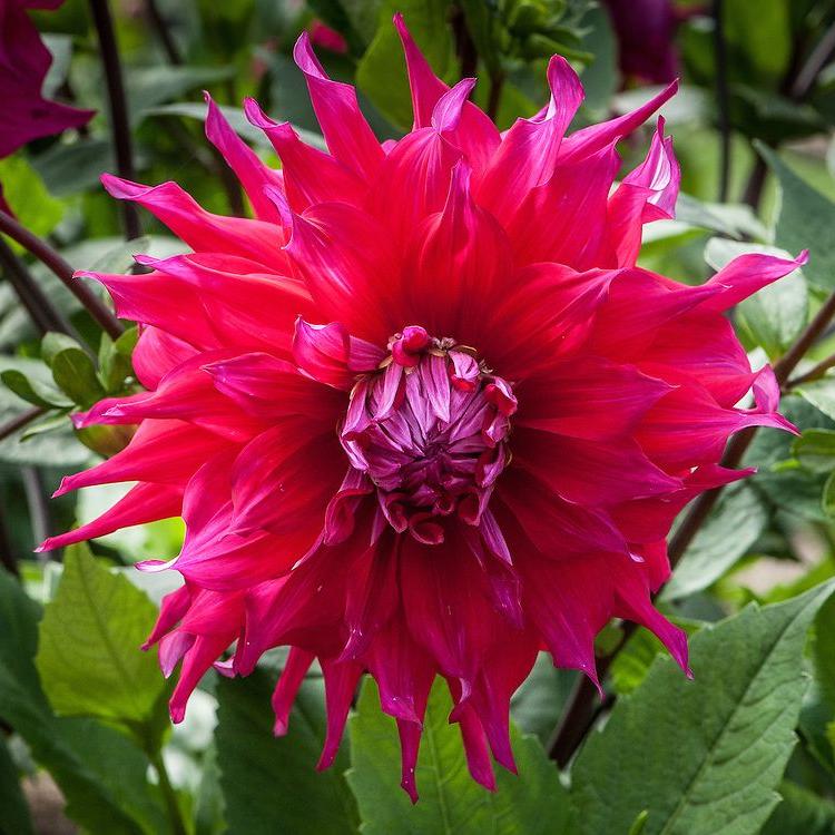 Клубни георгины декоративной Джокондо (Dahlia cultorum) относятся к самым крупным сортам, с цветами размером до 25 см. Их окрас пурпурный, иногда красный, встречается и фиолетовый, густо насыщенный. Лепестки крупные, широкие у основания, сужающиеся к концам.