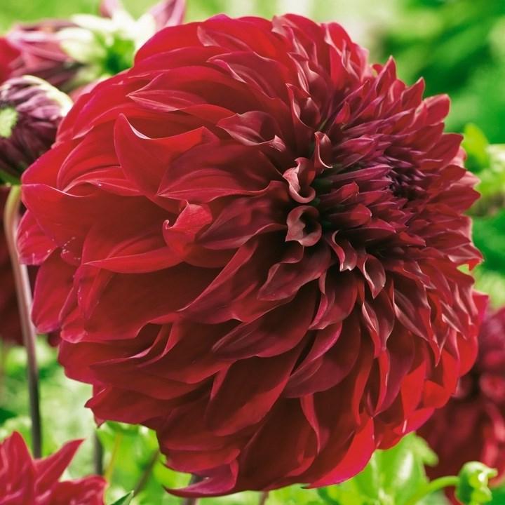 Среди прочих своих сородичей отличается продолжительным периодом цветения — с июля до октября. Цветки настолько большие, махровые и объёмные, что поникают под своим весом. Их малиново-красные шары неотразимы в вазе, но способны украсить и любую клумбу.