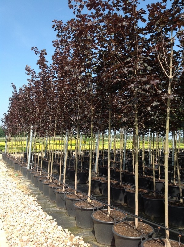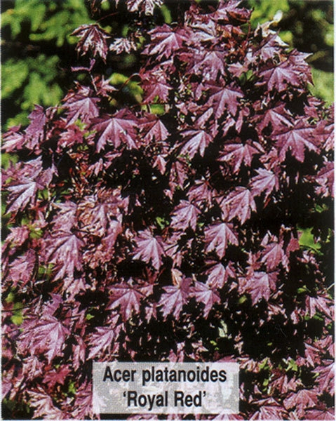 Дерево формы широкого конуса, листья блестящие, пурпурно-красные.