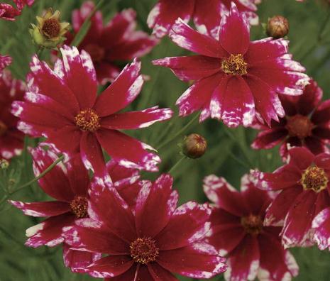 Кореопсис мутовчатый Руби Ред (Coreopsis verticilata) декоративное многолетнее растение, которое достигает в высоту 50 см. Листья похожи на иголки и имеют яркий зеленый цвет. Куст покрывается при цветении многочисленными соцветиями красного цвета, которые похожи на маленькие звездочки. Данный сорт очень любит солнечный свет, а к почве неприхотлив, может расти на любой земле. Однако декоративные качества проявляют только на плодородных, хорошо удобренных почвах. Руби Ред цветет достаточно продолжительное время и весьма обильно – с июля по сентябрь. Цветы имеют яркий, насыщенный красный оттенок. Данный сорт кореопсиса можно использовать в посадке в чистых группах, рабатке или просто для среза.