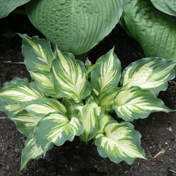 Хоста гибридная Лейксайд Пейсли Принт - многолетнее, декоративно-лиственное растение. Размер куста 15х20 см. Листья с узким кремовым центром и широким волнистым зеленым краем. Для посадки выбирают полутенистые или тенистые места, предпочитает влажные почвы. Полив тщательный и регулярный, при хорошем поливе у хосты будут крупные, здоровые листья и пышное цветение. Данный сорт прекрасно зимует. На одном месте может расти более 20 лет. Хоста гибридная Лейксайд Пейсли Принт эффектно смотрятся у водоёмов.