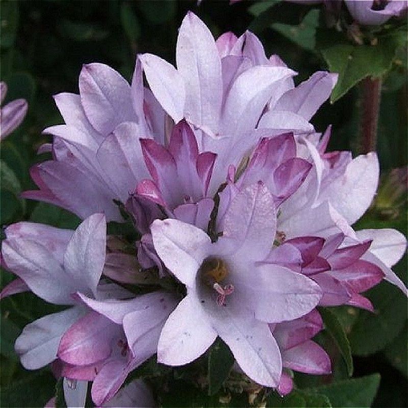 Колокольчик скученный Кэролайн - высота растения 60 см. Цветки сиреневые с ярко-розовой каймой. Почва для Колокольчика скученного Кэролайн подходит любая хорошо дренированная, некислая, умеренно влажная почва.