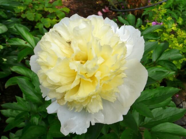 Травянистый пион Primevere относится к группе анемоновидных. Среднего срока цветения. Многолетнее корневищное растение 70-80 см высотой. Цветки крупные, 12-15 см. в диаметре, экстравагантной, редкой окраски. Внешние лепестки сливочно-белые, чашевидные. Центральные - короткие, узкие, канареечно-жёлтые, с возрастом светлеют. Аромат умеренный сливочно-белого цвета с розовым оттенком. Цветение обильное.