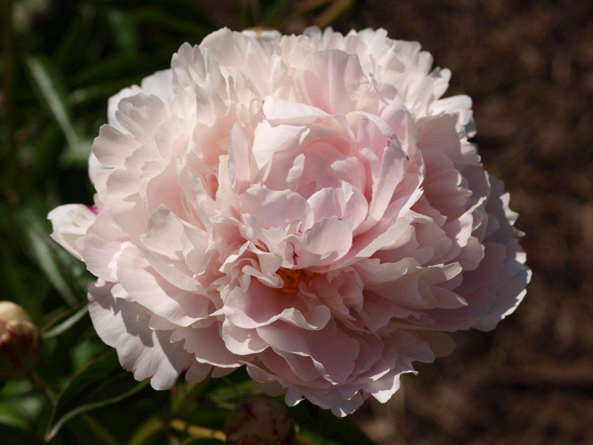 Травянистый пион Shirley Temple относится к группе махровых шаровидных травянистых пионов. Раннего срока цветения. Многолетнее корневищное растение 70-80 см высотой. Цветки крупные, до 18-20 см. в диаметре. Стебли прочные, куст компактный. Ароматный.