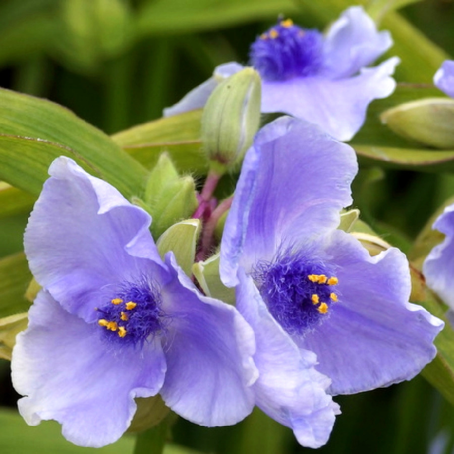 Традесканция Андерсона Эвридика - растение высотой около 50 см, с прямостоячими, ветвистыми, угловатыми стеблями, облиственными по всей длине. Цветки нежно-голубые. Цветёт май-август. Предпочитает слегка притененные, защищенные от ветра места с увлажненной, богатой, гумусной почвой. Традесканция Андерсона Эвридика хорошо смотрится и растет у водоемов.