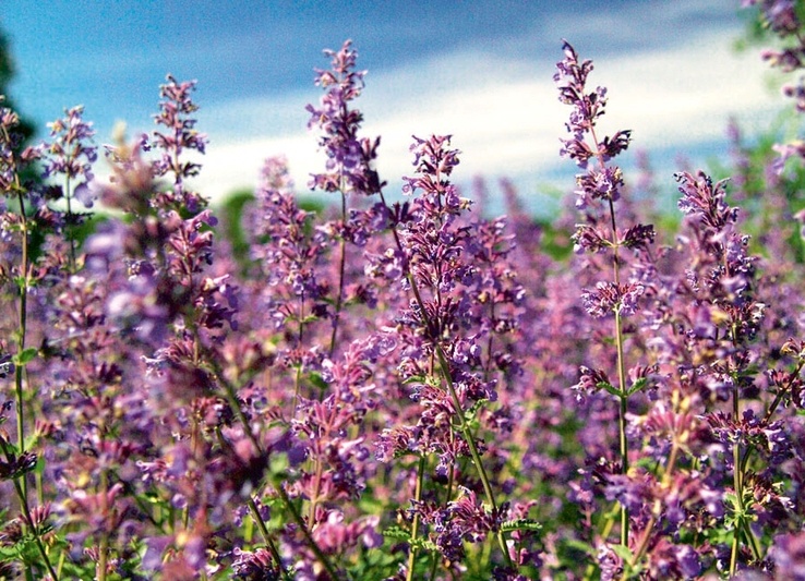 Многолетнее декоративное растение с насыщенным мятным ароматом идеально подходит для украшения цветников и альпийских горок. Образует пышные фиолетово-голубые соцветия, которые будут радовать глаз с июня по октябрь.