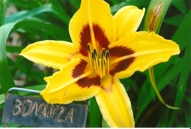 Саженцы лилейника Bоnаnzа в высоте составляют 70 см. Это гибрид с теплым и ярко желтым окрасом. Цветоносный, классический желтый с золотинкой лилейник. Глаз темный, коричнево - красный, горло фиолетово – коричневое. Крупномер Bоnаnzа имеет много достоинств, в частности – удивительно приятный запах, цветки очень эффектно смотрятся на высоких стеблях. Крайне неприхотлив, любимец дизайнеров сада. Ароматный. Зимостойкий. Диаметр цвета – 13-14 см. Цветение происходит в августе.