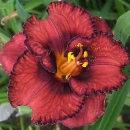 Лилейник Berrylicious - травянистый корневищный многолетник. Его высота 60 см, диаметр куста до 50 см. Цветок винно-красный, крупный, с фиолетовым центром и такого же цвета гофрированной каймой. Горло желтое. Диаметр цветка - 14 см. Время цветения - июль-август. Сорт цветет повторно. Предпочитает солнце и полутень.
