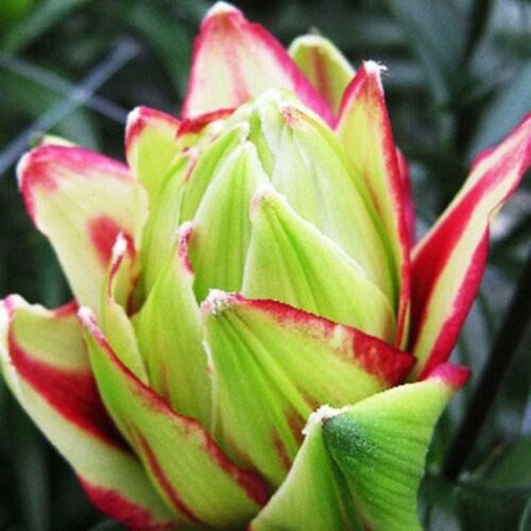 Лилия азиатская махровая Мистери Дрим (Lilium asiatic Mystery Dream) преобразит клумбу или цветочный уголок в саду. Необычное строение цветка и редкий зеленовато-белый, с мелкими крапинами ближе к основанию, цвет множества лепестков мгновенно привлекают внимание. В высоту лилия достигает 80 см, практически не имеет запаха, поэтому отлично подходит для букетов и украшения помещений. Цветет Лилия азиатская махровая Мистери Дрим со второй половины июня, но пригодна для выгонки в любое время года. На стебле множество относительно мелких ярко зеленых листьев, верхушка заканчивается большим количеством бутонов, которые долго не раскрываются, но после открытия также долго не опадают.