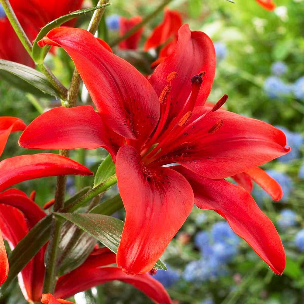 Луковицы Лилии азиатской Ред Каунти (Lilium asiatic Red County) идеальны как основа цветника и подходят для расстановки цветовых акцентов. Темно-красные цветы этого сорта меняют свои оттенки в процессе, приобретая томатно-оранжевый цвет. Как и остальные представители азиатских сортов, Ред Каунти отличается морозостойкостью и нетребовательностью к уходу. Растение отлично реагирует на минеральные подкормки, отвечая на них обильным и продолжительным цветением. Выбирая место для посадки, нужно учитывать, что Лилия азиатская Ред Каунти может достигать 90 см.