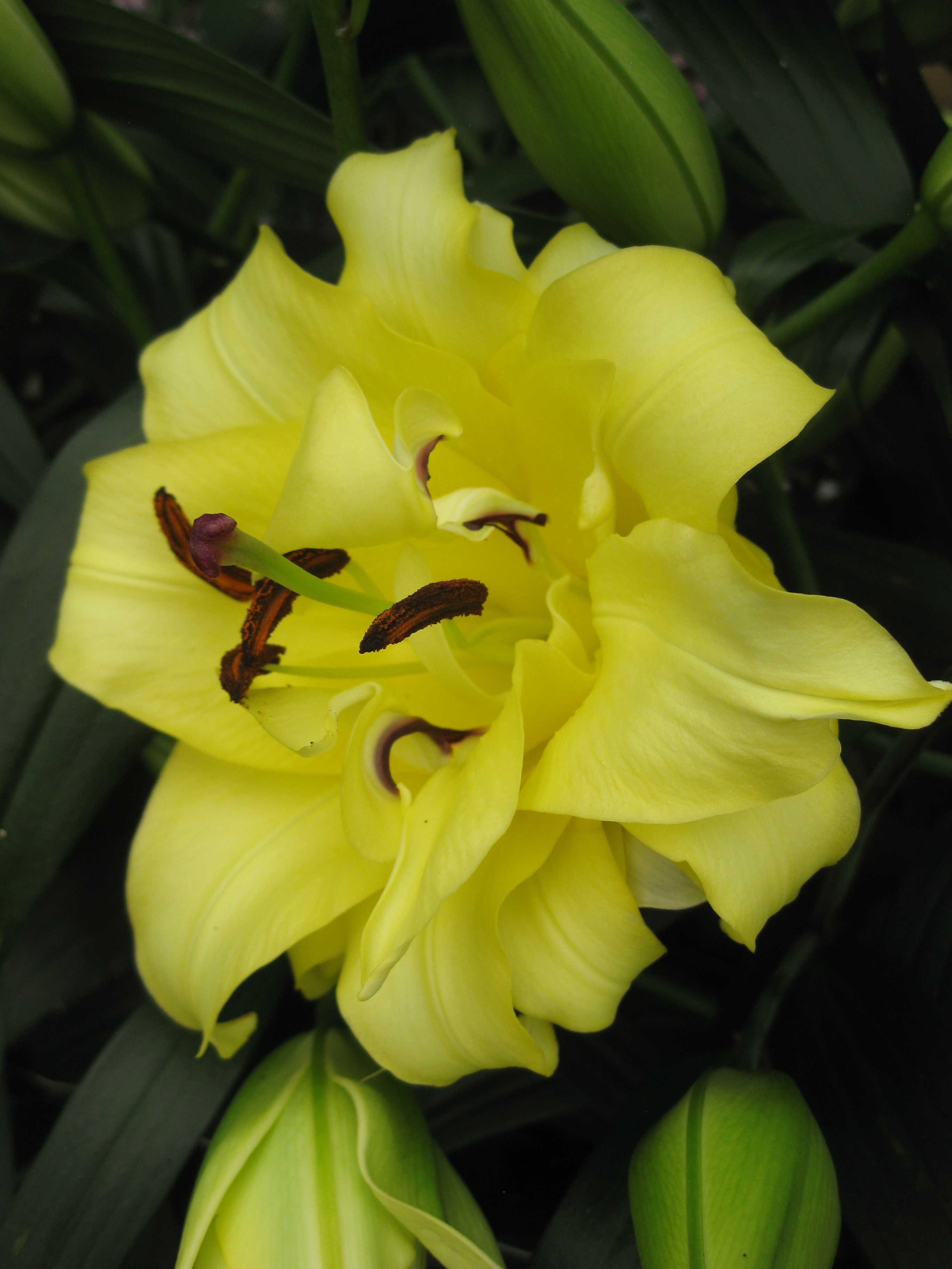 Лилия Exotic Sun привлекает своим ярко-желтым окрасом, махровыми краями и приятным запахом. Высота растения - 130 см. Время цветения - июль-август. Растение многолетнее, с большими цветами, средний диаметр которых достигает 20 см.
