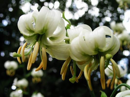 Лилия Martagon Album - многоцветковая лилия из группы мартагон, вырастает до 90-150 см. Редкий сорт с белыми, без крапа, чалмовидными цветами, диаметром до 10-12 см, и большими, бросающимися в глаза, оранжевыми тычинками. Лепестки сильно закручиваются назад. На одном растении может развиться от 20 до 50 цветков. Зимостойкость высокая. Как и все мартагоны, хороша для долговременных композиций заднего плана.